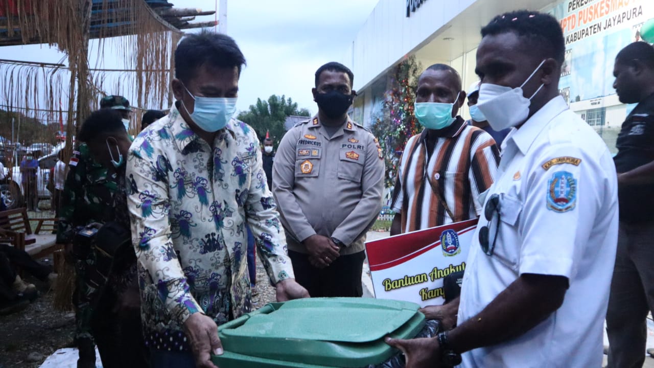 AIRU, PAPUA BARU.COM,- Anggota Komisi A DPRD Kabupaten Jayapura H. Wagus Hidayat, S.E., memberikan bantuan dalam rangka Natal 2021 bagi warga di Distrik Airu, Kabupaten Jayapura, Senin (6/12/2021) lalu