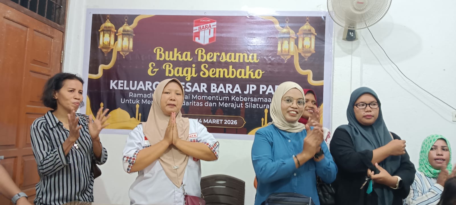 JAYAPURA,tabloidpapuabaru.com,- Keluarga Besar Barisan Relawan Jalan Perubahan – (Bara JP) Provinsi Papua menggelar buka puasa bersama sekaligus memberikan bantuan Sembako kepada keluarga-keluarga relawan Bara JP yang hadir pada giat bukber di markas Bara JP Abepura Kota Jayapura sabtu (14/3/2026).