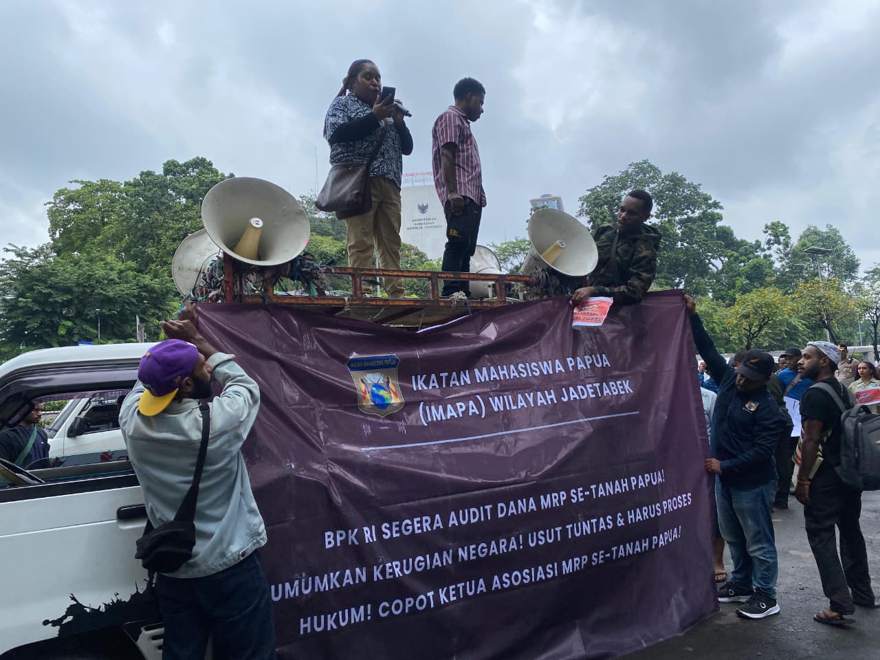 “Aspirasi dari IMAPA menjadi perhatian kami, dan segera kami akan sampaikan kepada seluruh perwakilan BPK yang ada di seluruh provinsi Tanah Papua untuk segera diaudit,” ujar Fransiskus perwakilan BPK RI di hadapan massa aksi.