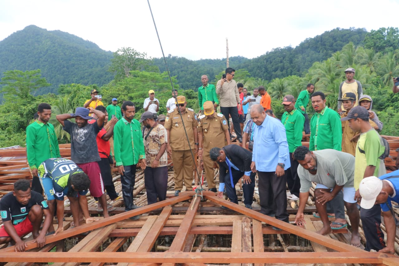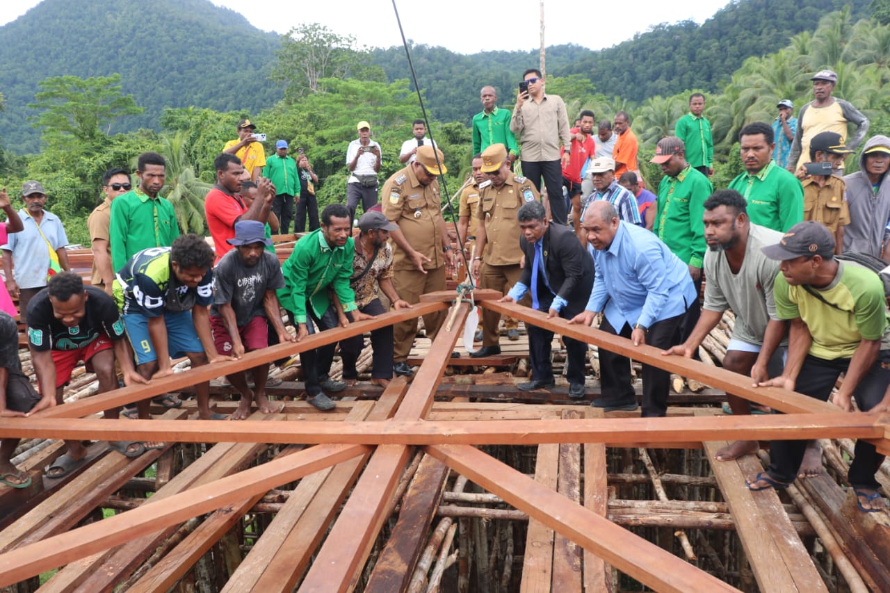 JAYAPURA.tabloidpapuabaru.com,- Bupati Supiori, Heronimus Mansoben, S.IP, M.Si, menghadiri prosesi penaikan kap Gereja GKI Kanaan, Wandos. Dalam sambutannya, bupati mengucap syukur atas dukungan cuaca cerah dan mengingatkan bahwa gereja sejati adalah jemaat sebagai “Bait Allah yang hidup”.