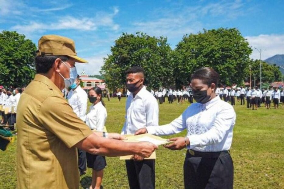 Yapen.PapuaBaru.Com. Stelah menungu sekian Lama Akhirnya, 270 CPNS menerima surat keputusan Calon Pegawai Negeri Sipil (SK CPNS) lingkungan Pemerintah Kabupaten Kepulauan Yapen, yang diserahkan langsung saat Upacara Apel PNS oleh Bupati Kabupaten Kepulauan Yapen Tonny Tesar kepada beberapa perwakilan CPNS, berlangsung di lapangan Trikora alun alun Serui Senin, 1 Maret 2021.