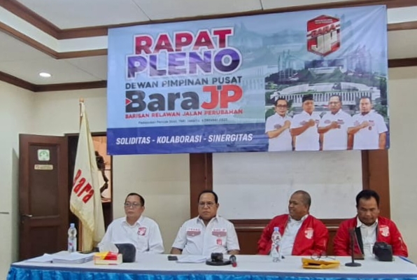 “Harapan rapat pleno ini adalah agar organisasi Bara JP semakin solid dalam menjalankan visi, misi, dan programnya. Kami sudah menyatakan sikap mendukung Prabowo–Gibran dua periode, dan kini saatnya Bara JP berbenah serta menghidupkan mesin organisasi di semua tingkatan — pusat, provinsi, hingga kabupaten,” ujar Williem Frans Ansanay di Jakarta 4 Oktober 2025.