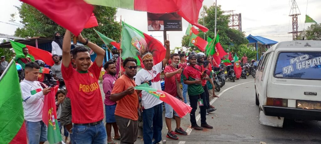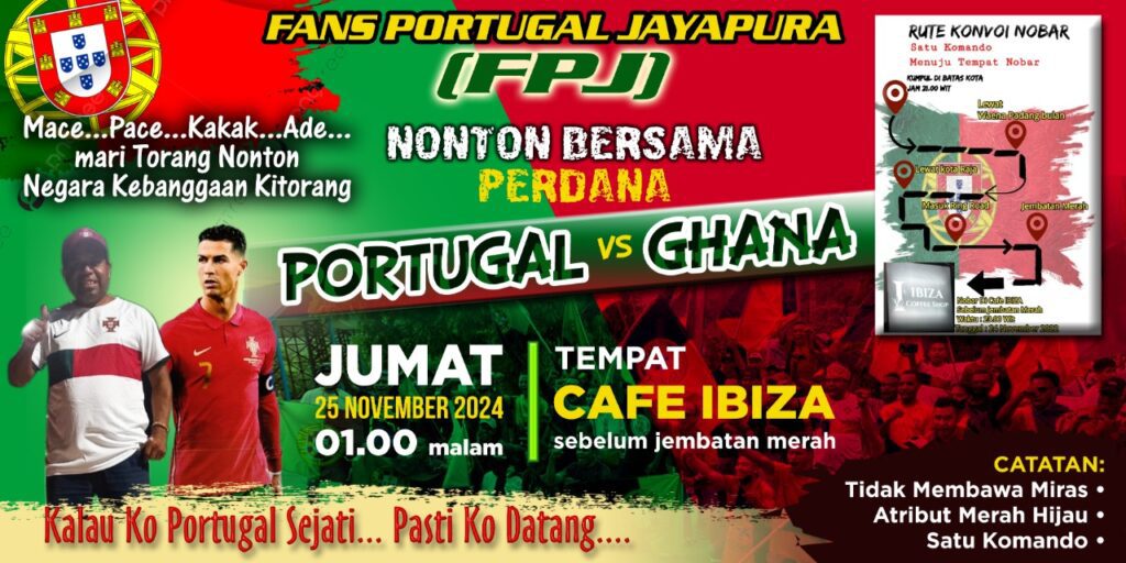JAYAPURA.tabloidpapuabaru.com,- Ribuan Fans Portugal di Kota Jayapura meyakini tim kebanggaannya akan tampil sebagai pemenang saat melawan tim Chana di Qatar pada subuh nanti atau pada pukul 01.00 Wit malam.