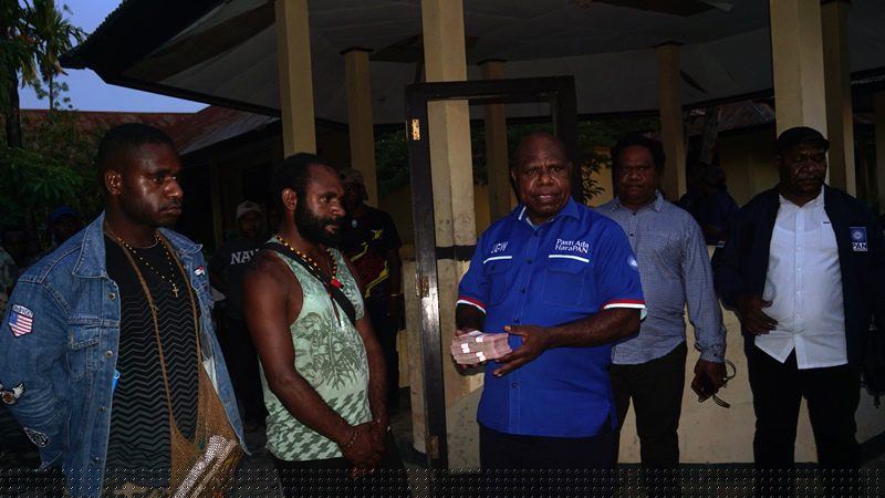 Kedatangan Usman G. Wanimbo (UGW) bersama para Kader PAN disambut Ketua Komunitas Mahasiswa Pelajar Puncak Jaya (KMPPJ) Kota Studi Jayapura, Nemius Kogoya dan Ketua Asrama Mahasiswa Distrik Yamo, Mius Wenda bersama seluruh mahasiswa pengungsi.