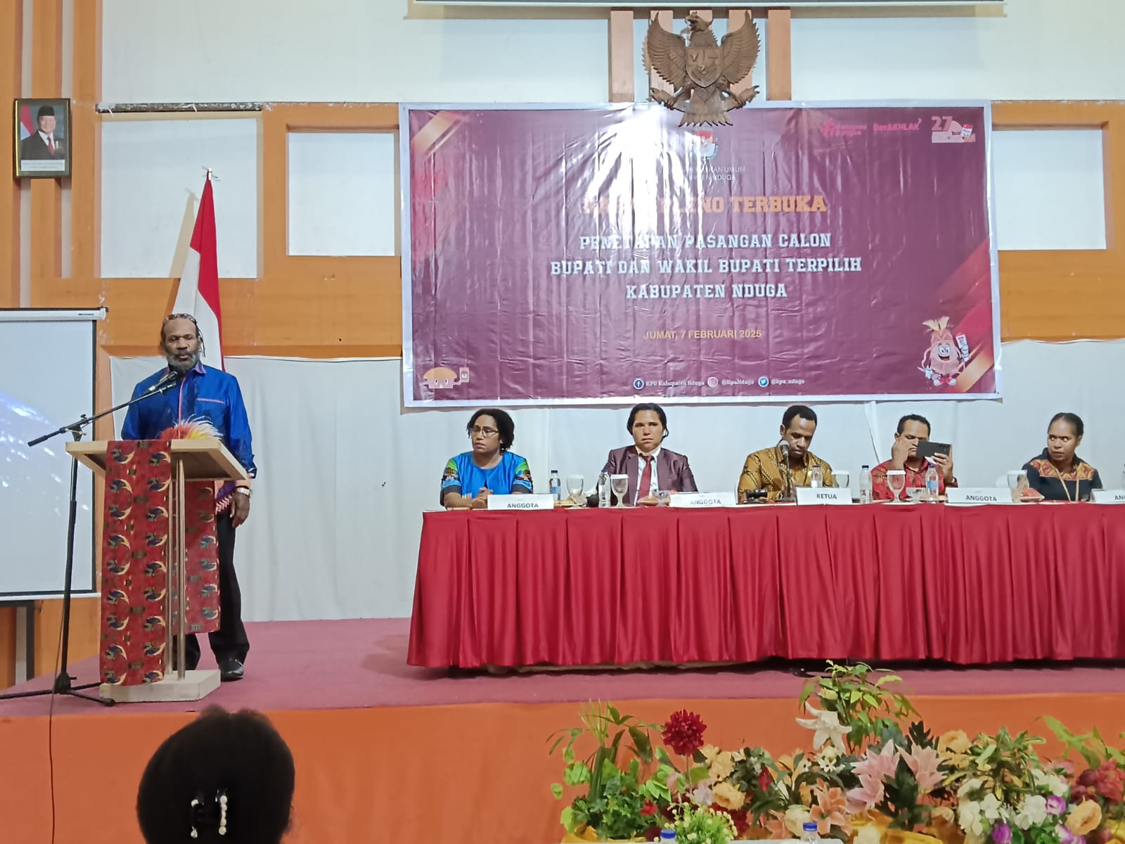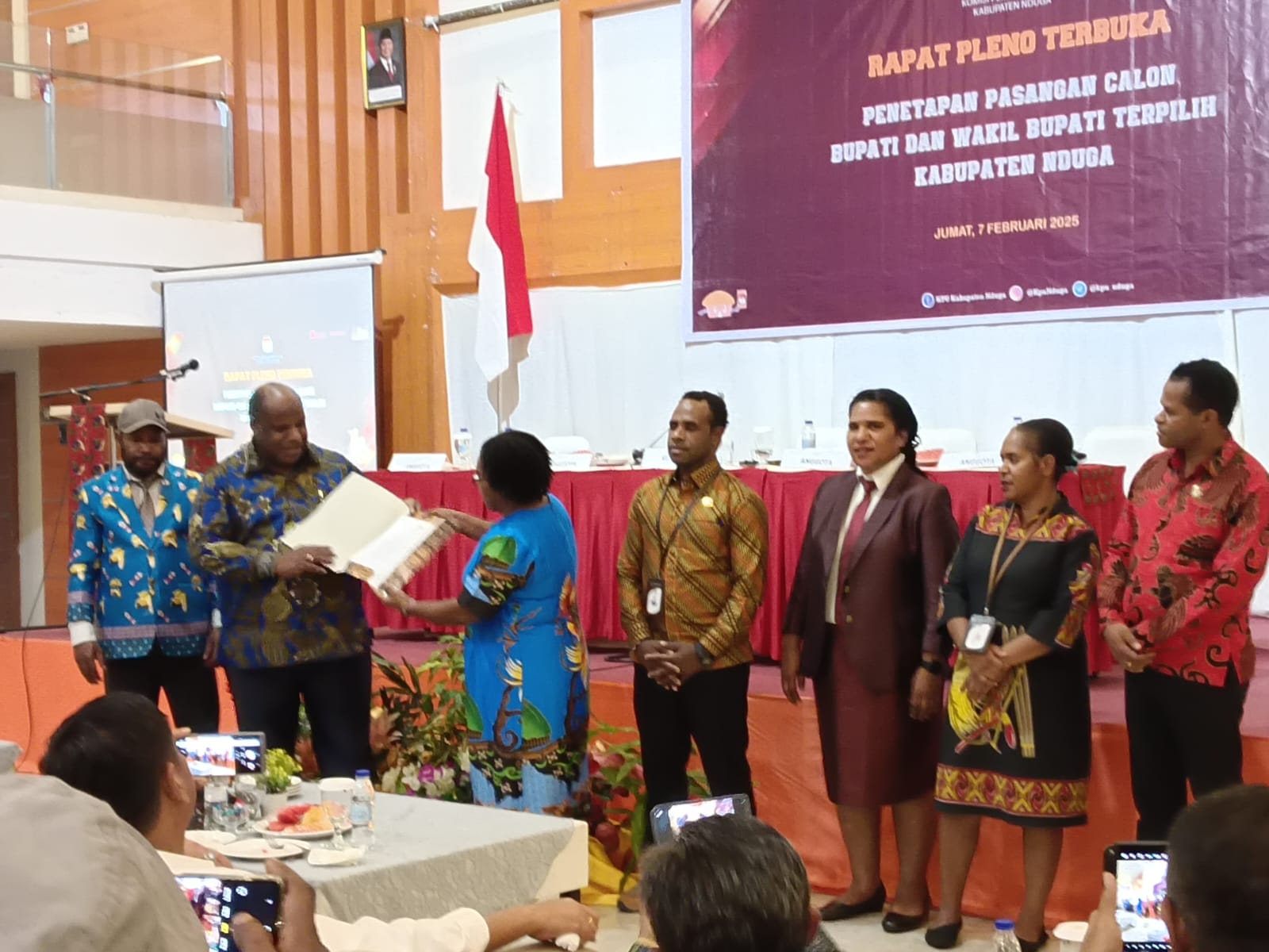 Komisi Pemilihan Umum (KPU) Kabupaten Nduga, Provinsi Papua Pegunungan menetapkan pasangan Dinar Kelnea dan Yoas Beon (Diyo) sebagai Bupati dan Wakil Bupati terpilih untuk periode 2025-2030. Bertempat di salah satu hotel di Jayapura, pada Jumat, (7/2/2025).