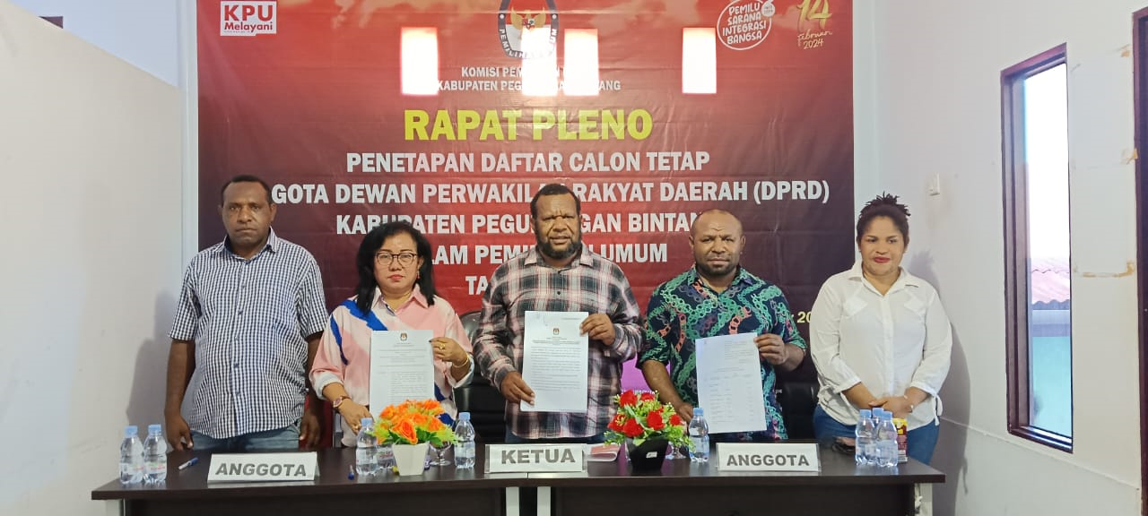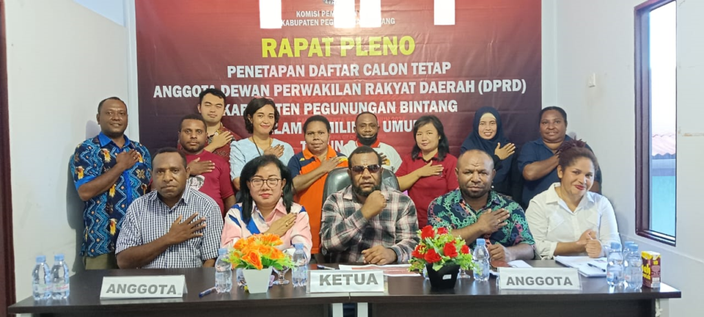 Ketua KPU Pegunungan Bintang, Titus Lao Mohi, M.Si saat memberikan keterangan kepada wartawan mengatakan bahwa, KPU Kabupaten Pegunungan Bintang telah melaksanakan Rapat Pleno tertutup dalam rangka penetapan daftar calon tetap , anggota DPRD Kabupaten Pegunungan Bintang.