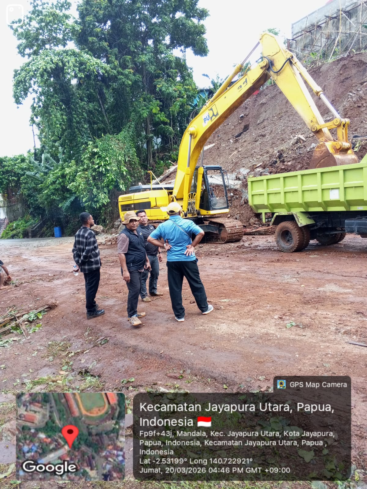 Penanganan awal dilakukan oleh Dinas Pekerjaan Umum dan Penataan Ruang (PUPR) Kota Jayapura melalui Bidang Sumber Daya Air (SDA) bersama tim Balai Wilayah Sungai (BWS). Pembersihan material longsor dilakukan secara darurat untuk membuka kembali akses yang tertutup.