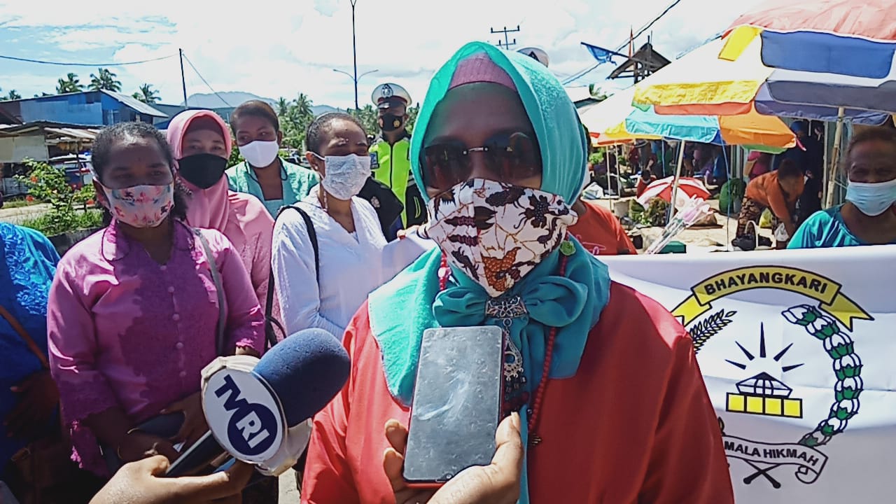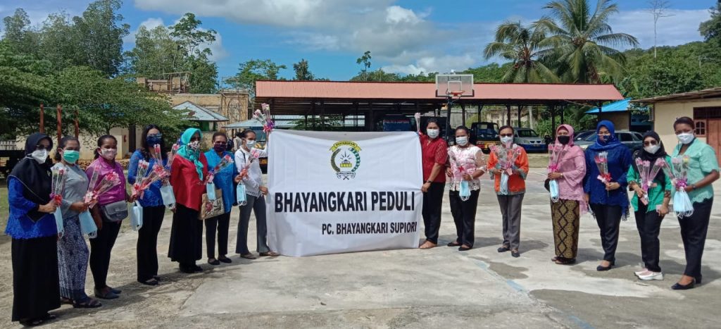 “Yang kedua, dalam rangka hari Kartini, ibu-ibu Bhayangkari Supiori peduli terhadap covid-19, sehingga pada hari ini (kemarin, red) kita membagi-bagi masker dan juga membagi bunga kepada mama-mama dalam rangka mempererat ibu-ibu Bhayangkari Supiori,” ungkap Ny. Umi.
