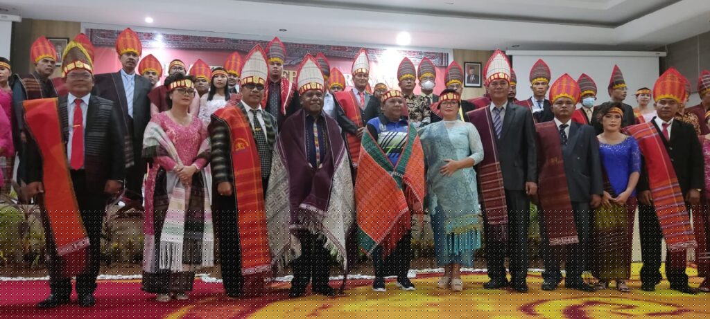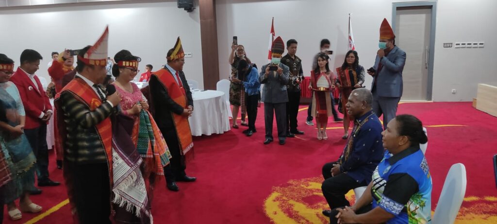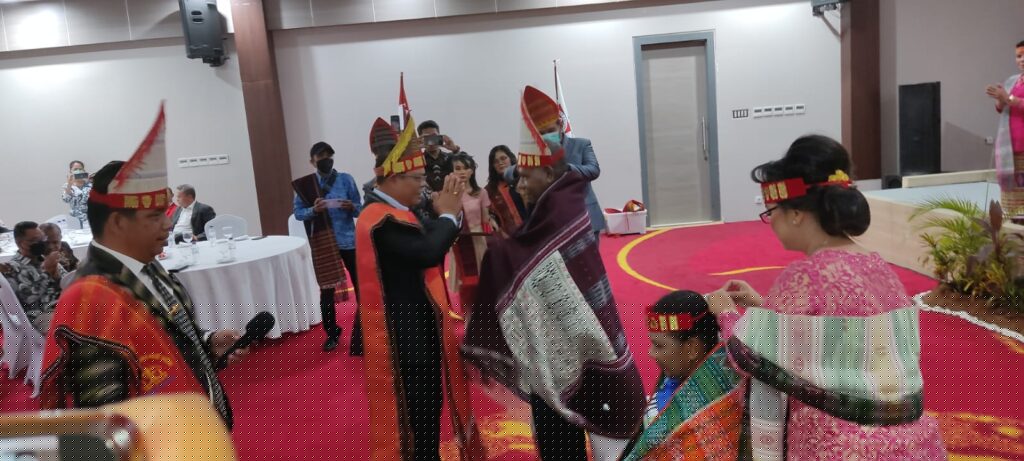 Kehadiran kedua pejabat Pemkab Jayapura disambut upacara adat pemberian kain Ulos sebagai wujud kebesaran hati masyarakat Batak yang berada di Bumi Khenambay Umbay, Sabtu 25 Juni 2022.