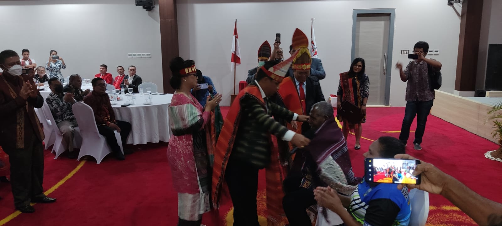 Dalam sesi tortor, tampak Ketua Kerukunan Masyarakat Batak (KMB) yang baru dilantik Sihar L. Tobing, mempersembahkan Ulos Batak disematkan langsung kepada Bupati Jayapura dan Sekda Kabupaten Jayapura, sebagai tanda penghormatan dan merupakan identitas budaya Batak yang dikenal hingga ke mancanegara.