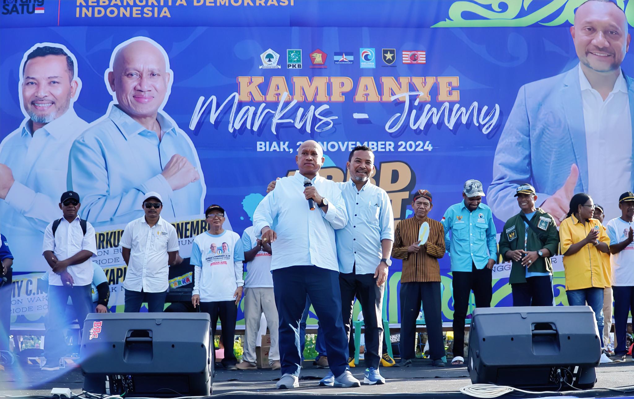 “Jangan ada lagi pasien-pasien yang ditolak di fasilitas pelayanan kesehatan, pemerintah harus benar-benar hadir untuk masyarakat, di era Markus dan Jimmy, kami optimis memperbaiki (sehingga) pelayanan kedepan lebih maksimal,”ungkap Markus Mansnembra saat berorasi dalam kampanye akbar di dapil 1 Biak Kota, Rabu (20/11).