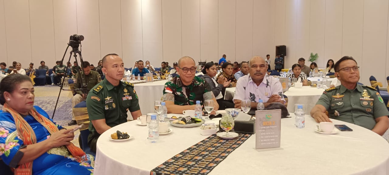 Pemateri pertama, dari Kodam XVII/Cenderawasih, kedua dari Dinas Koperasi Tenaga Kerja dan UMKM Provinsi Papua, Dinas Kelautan dan Perikanan Provinsi Papua serta Dinas Pemberdayaan Masyarakat Kampung dan Adat Provinsi Papua.