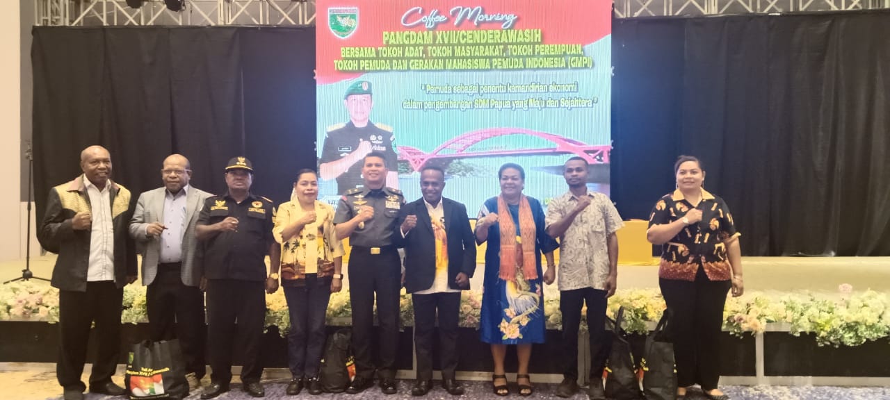 Mewakili Pangdam XVII/Cenderawasih, Kepala Staf Komando Daerah Militer (KASDAM) XVII/Cenderawasih, Brigadir Jenderal TNI Thevi Zebua, S.E., M.M, saat wartawan media tabloidpapuabaru.com melakukan wawancara khusus, mengatakan bahwa kegiatan Coffe Morning Pangdam XVII/Cenderawasih bersama tokoh Adat, tokoh Masyarakat, tokoh, Perempuan, tokoh pemuda dan mahasiswa adalah inisiasi pangdam XVII/Cenderawasih.