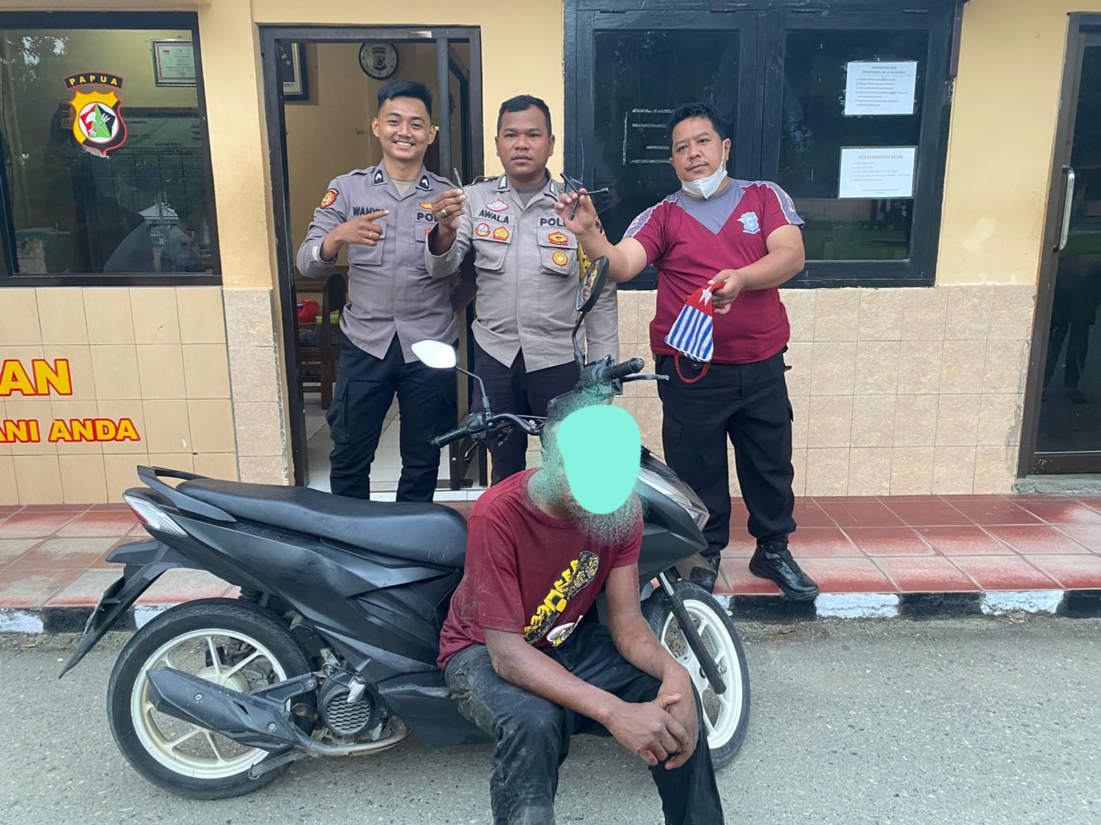 Ia, juga.menambahkan, korban segera mengejar pelaku sambil berteriak meminta bantuan. Namun, ia kehilangan jejak di sekitar jembatan terdekat. Mengetahui kejadian tersebut, Bripka Awaludin segera memberi informasi kepada Unit Patroli 801. Dibantu oleh masyarakat sekitar, tim patroli yang dipimpin oleh Aipda Daniel Tapilatu berhasil mengejar dan menangkap pelaku di kawasan perumahan BTN Bambar. Sepeda motor yang dicuri berhasil diamankan dan kini telah diserahkan ke Polres Jayapura sebagai barang bukti.