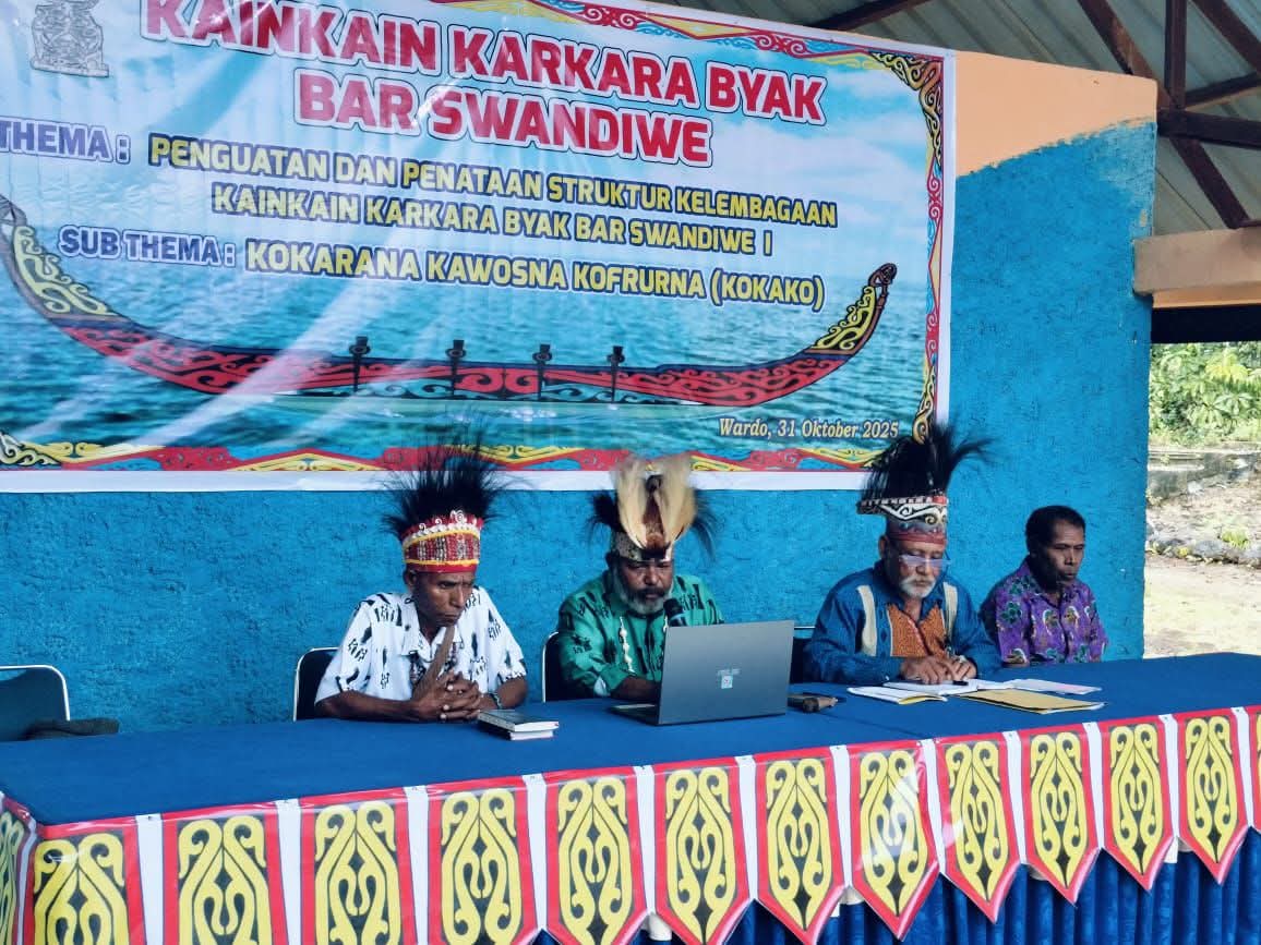 BIAK.tabloidpapuabaru.com,- Kaikain Karkara Byak yang mana merupakan Based Social Organisasi / organisasi masyarakat asli suku Byak melaksanakan kegiatan Penguatan dan Penataan Struktur Kainkain Karkara Byak Bar Swandiwe atau wilayah adat Swandiwe di Kampung Wardo, Kamis (30/10/2025).