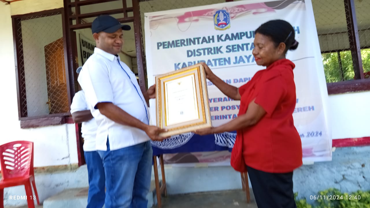 Sebelum dilakukan peresmian dapur PMT, Kader Posyandu Ottauw Sereh memberikan penghargaan kepada Pemerintah Kampung Sereh, yang di serehkan oleh Ketua Posyandu Yuliana Mokay kepada Kepala Kampung Sereh Steven Eluay, dan di saksikan muspida kampung dan seluaruh masyarakat yang hadir.