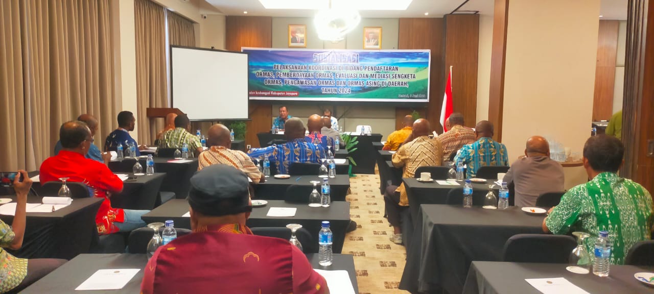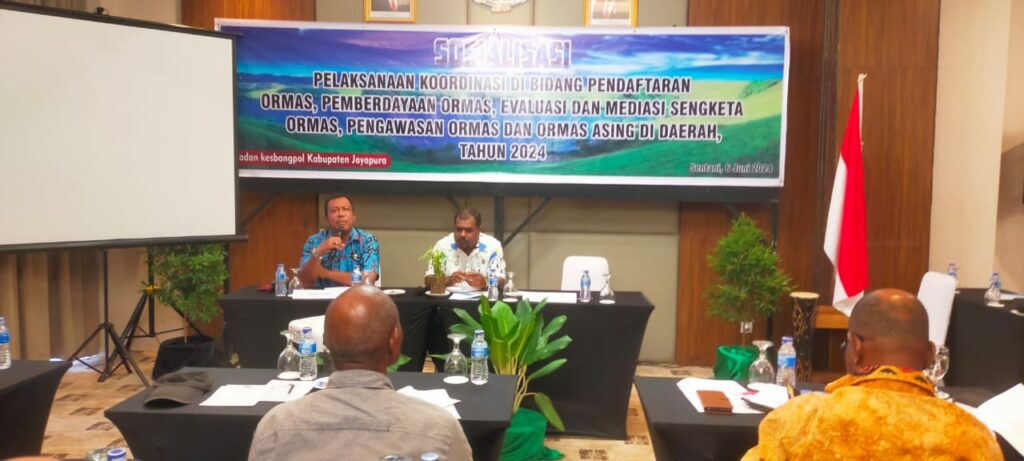SENTANI.tabloidpapuabaru.com,- Kesbangpol Kabupaten Jayapura Gelar Giat Sosialisasi Bersama Ormas’ Dalam Rangka Pengangkatan Kursi DPRK 2024 – 2029. Sosialisasi Tentang Pelaksanaan Kordinasi di Bidang Ormas, Pemberdayaan Ormas, Evaluasi dan Mediasi Sengketa Ormas, Pengawasan Ormas, dan Ormas Asing di Daerah Tahun 2024.