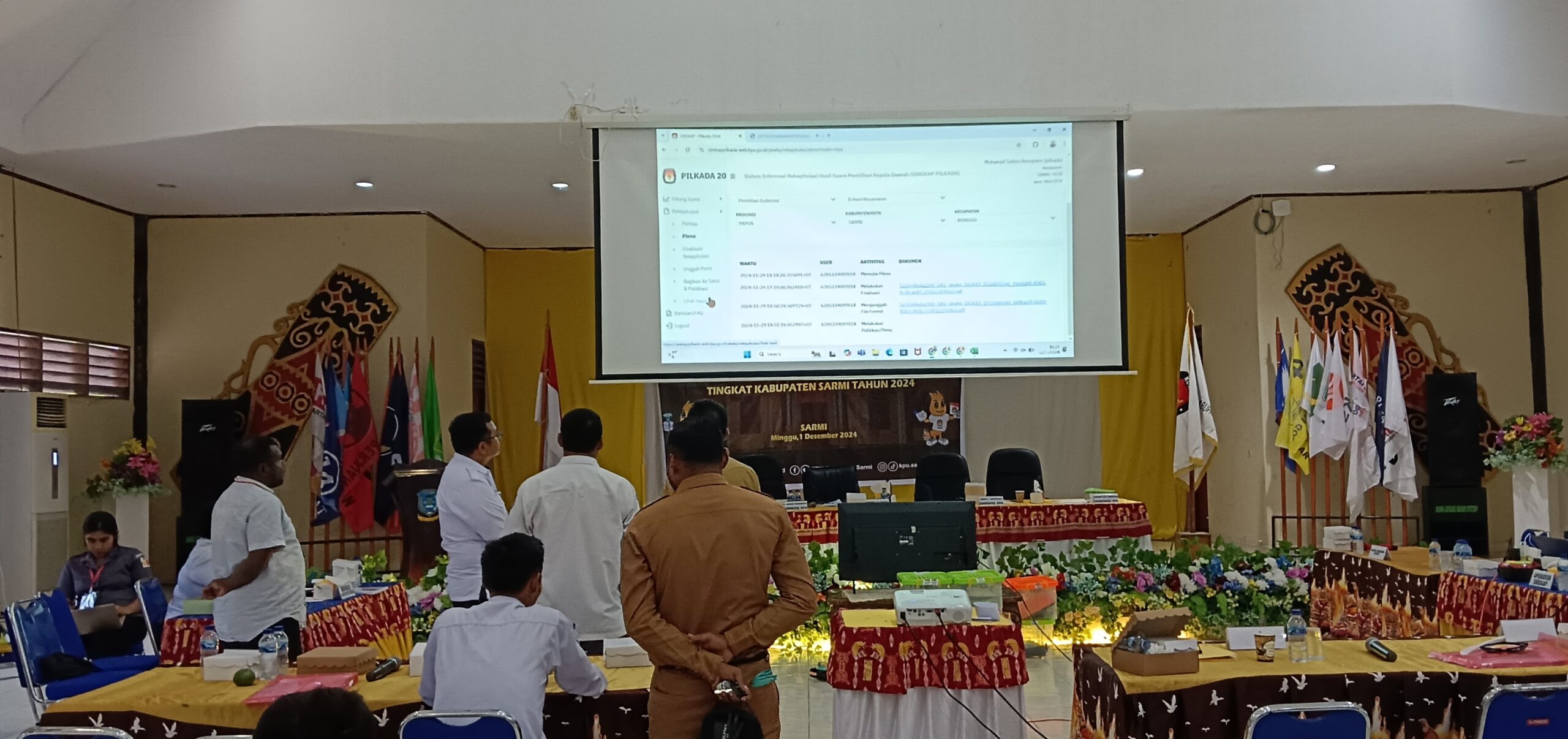 SARMI.tabloidpapuabaru.com,- Pj. Bupati Kabupaten Sarmi, Ir. Iman Djuniawal, M. Si, Senin 2 Desember 2024, memantau langsung proses jalannya pleno perolehan suara tingkat kabupaten yang berlangsung di aula kompleks Kantor Keuangan petam Kabupaten Sarmi.