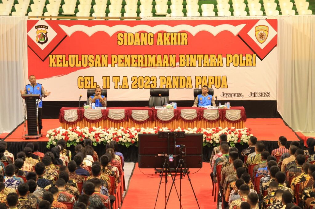 JAYAPURA- tabloidpapuabaru.com,- Sidang Akhir Kelulusan Penerimaan Bintara Polri Gel. II T.A. 2023 Panda Papua berlangsung di Gedung Olahraga Cenderawasih, Jayapura.