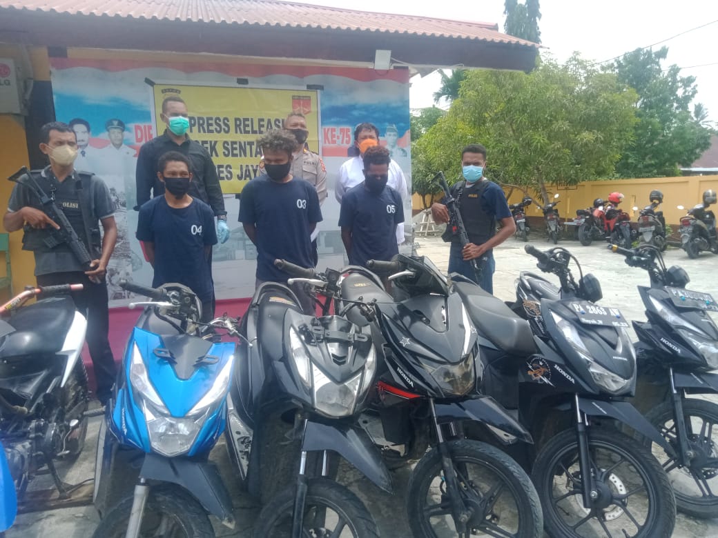 SENTANI,PAPUA BARU.COM,- Polsek Sentani Kota berhasil menangkap tiga orang pelaku pencurian kendaraan bermotor dan mengamankan enam unit sepeda motor berbagai merk sebagai barang bukti.