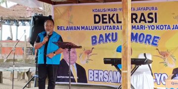 Hal itu ditegaskan Ketua Kerukunan Masyarakat Maluku Utara Kota Jayapura, Dr. Djamsier Husein, SE, M. Si saat memberikan sambutan pada saat Deklarasi Relawan Maluku Utara For Mari Yo yang digelar di lokasi wisata pantai Hamadi Kota Jayapura, Sabtu, 12 Juli 2025.